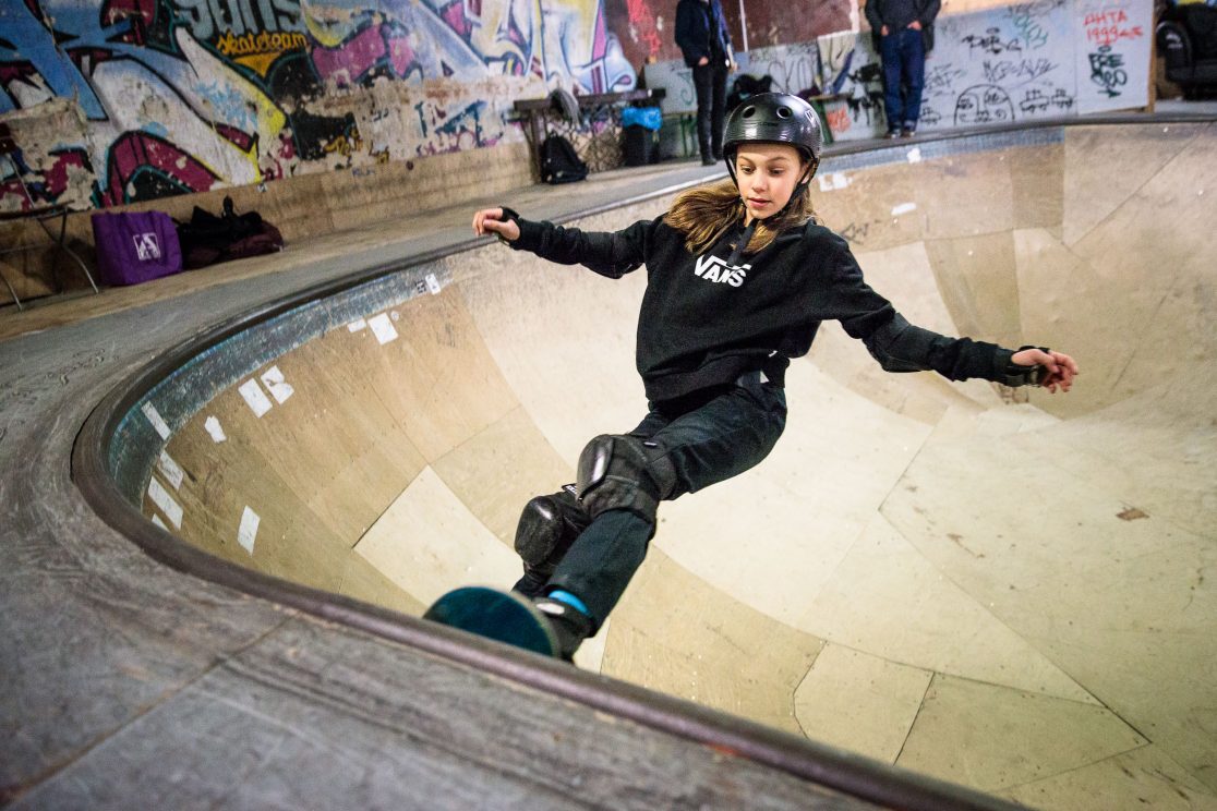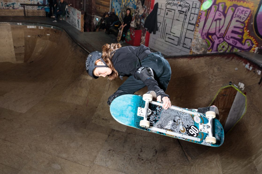 Mit ihrem Skateboard möchte Lilly Stoephasius (12) nach ganz oben – nicht nur auf der Rampe, sondern vielleicht auch bei den Olympischen Spielen.